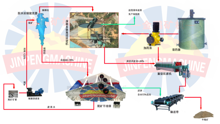 尾礦干排是一種新興的尾礦處理技術,使用尾礦干排設備對尾礦富含水的礦漿進行脫水處理。形成含水量低、易沉淀固化和利用場地堆存的礦渣,礦渣可以轉運至固定地點進行干式堆存。