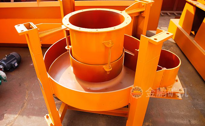 散狀物料從料斗裝入受料筒中,物料沿受料筒壁借本身自重堆積在圓盤上,用調節螺栓調整套筒與圓盤之間的間隙,可以控制物料在圓盤上的自然堆角。圓盤轉動時,物料被圓盤上的卸料刀均勻地刮到圓盤外下落,這樣隨著圓盤轉動,物料便由卸料刀均勻刮入接料斗中。圓盤連續運轉,就完成了均勻的給料操作。調整卸料刀與圓盤之間的間隙,也可以控制給料量的多少。工作時,電動機通過皮帶輪帶動裝在蝸桿減速器上的圓盤轉動。